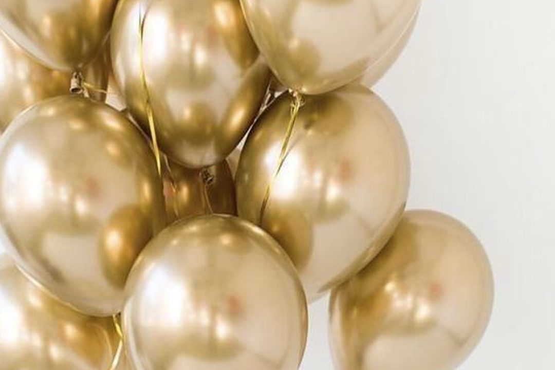 Agrega a tu regalo un bonito ramo de globos dorados.