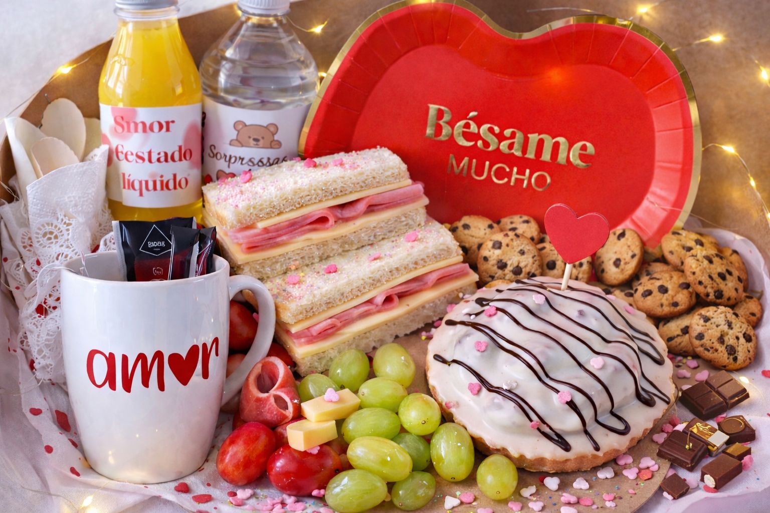 Este desayuno sorpresa San Valentin está pensado para 1 persona y combina dulce, salado, bebidas y detalles románticos que convierten la sorpresa en un recuerdo inolvidable.